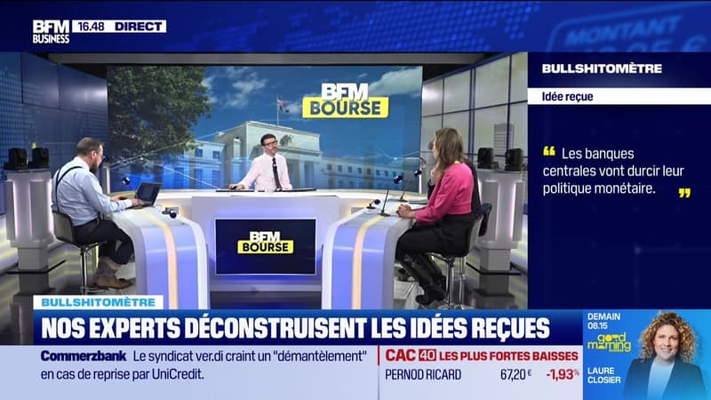 Ce lundi 16 mars, Antoine Larigaudrie, journaliste BFM Business, John Plassard, associé et responsable de la stratégie d'investissement de Cité Gestion, Hortense Lacroix, gérante actions chez Montpensier ARBEVEL, Gwendal Daubresse-Chasle, journaliste BFM Business, Bertrand Lamielle, directeur général de Portzamparc Gestion, Mathias Pecqueur, gérant small caps France et président de Maitice Gestion, Claire Dissaux, responsable des études macroéconomiques du Groupe AXA, Guillaume Chaloin, directeur des Gestions Actions chez DELUBAC AM, Julien Marion, journaliste BFM Business, Romain Daubry, consultant pour BOURSE DIRECT, Valentine Ainouz, responsable de la stratégie taux chez Amundi Institute, Raphaël Thuin, directeur des stratégies de marchés de capitaux chez Tikehau Capital, et Emeric Blond, gérant pour Tailor AM étaient les invités de l'émission BFM Bourse présentée par Guillaume Sommerer. BFM Bourse est à voir ou écouter du lundi au vendredi sur BFM Business.