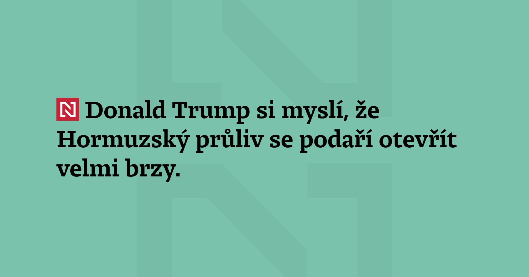 Donald Trump si myslí, že Hormuzský průliv se podaří otevřít velmi brzy. Dodal, že neví, jestli je íránský nejvyšší duchovní vůdce Modžtaba Chameneí naživu, nebo ne. (ČTK)
