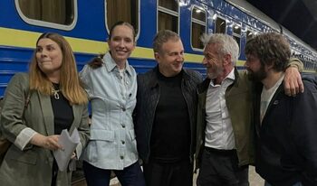 Филмовата звезда Шон Пен слезе от вагон на влак в центъра на Киев днес на хиляди мили от блясъка на холивудския театър "Долби", където не се появи, за да получи третия си "Оскар" на церемония, завърширла часове по-рано. 65-годишният Пен...