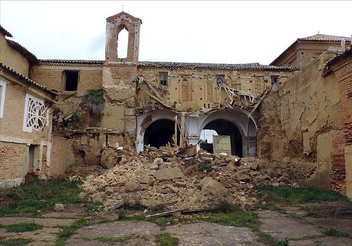 Nuevo derrumbe en el convento de San Bernardino de Siena, en el municipio vallisoletano de Cuenca de Campos. Casi 400 días después de que colapsara la nave lateral de la iglesia del cenobio lo ha hecho también su espadaña, lo que ha llevado a la Fundación Rehabitar Tierra de Campos a denunciar «la lenta desaparición de este monumento». La espadaña cayó el pasado sábado sobre los escombros de 2025 y no sobre la propia iglesia, lo que habría afectado a partes importantes de la cubierta y bóvedas de sus naves, actualmente en situación «muy precaria». Cabe destacar que la iglesia es en la actualidad propiedad de la Fundación Rehabitar Tierra de Campos desde 2018, que la compró para evitar su... Ver Más