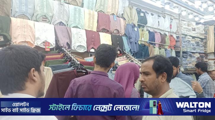 ঈদুল ফিতরকে ঘিরে রাজধানীর পাঞ্জাবির বাজার এবার জমজমাট; বেচা-বিক্র বেশ ভালো। দাম নিয়ে ক্রেতাদের অস্বস্তি থাকলেও বিক্রেতারা এবার ক্রেতা পেয়ে বেশ স্বস্তিতে। চাঁদ-রাত পর্যন্ত এই কেনাকাটা। সোমবার ঢাকার নিউ মার্কেট হয়ে এলিফ্যান্ট রোড থেকে আজিজ সুপার মার্কেট পর্যন্ত হেঁটে দেখা যায়, পাঞ্জাবির দোকানে দোকানে ক্রেতাদের ভিড়। কয়েক বছরের রাজনৈতিক অস্থিরতায় ক্ষতির মুখে পড়া ব্যবসায়ীরা এবার সেই ঘাটতি কিছুটা পুষিয়ে নেওয়ার আশা করছেন।