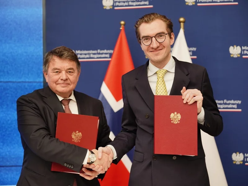 Rząd przeznaczy 300 mln zł z Funduszy Norweskich na bezpieczeństwo. Umowę podpisali wiceminister funduszy Jan Szyszko i ambasador Norwegii w Polsce Øystein Bø.
