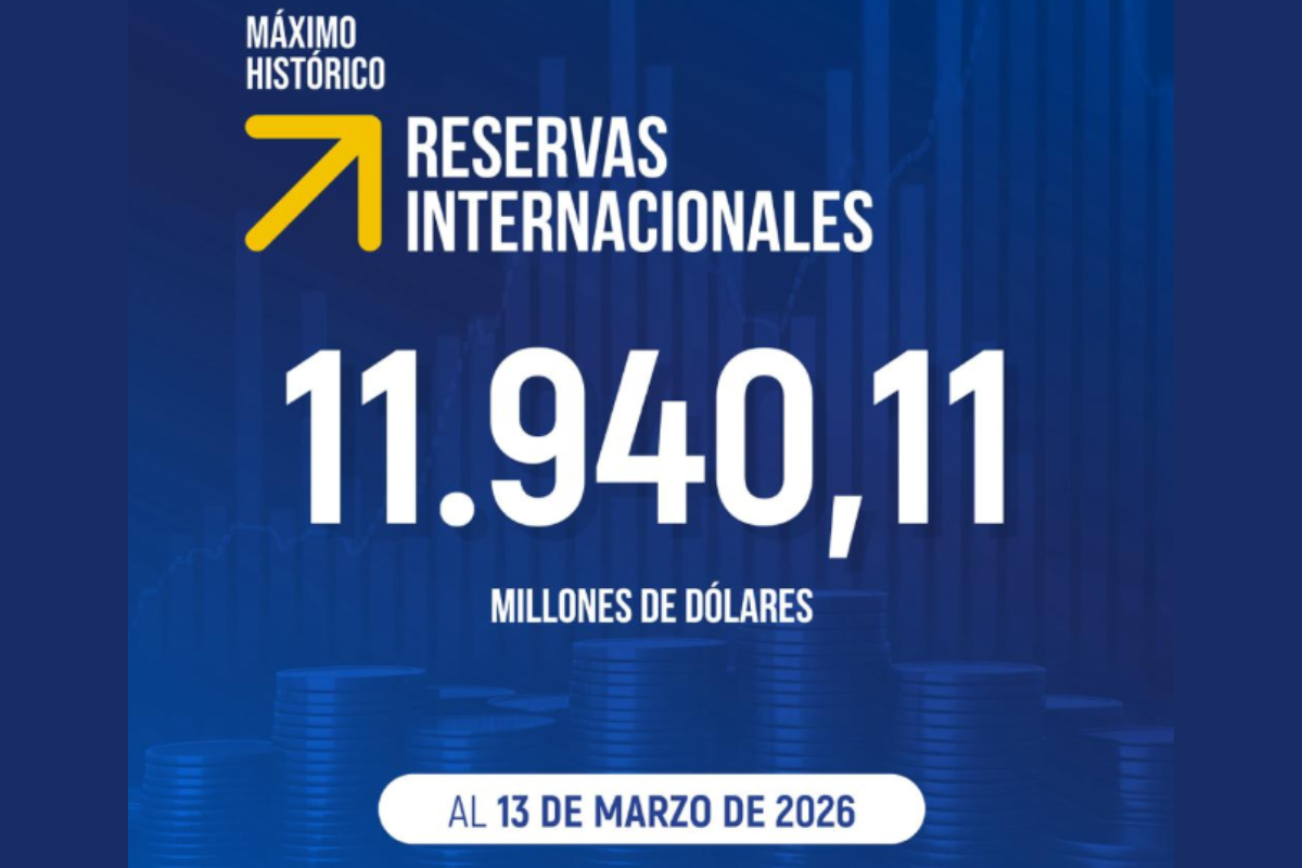 Las Reservas Internacionales cierran el primer trimestre de 2026 al alza. Tras alcanzar los 11 940,11 millones de dólares en marzo.