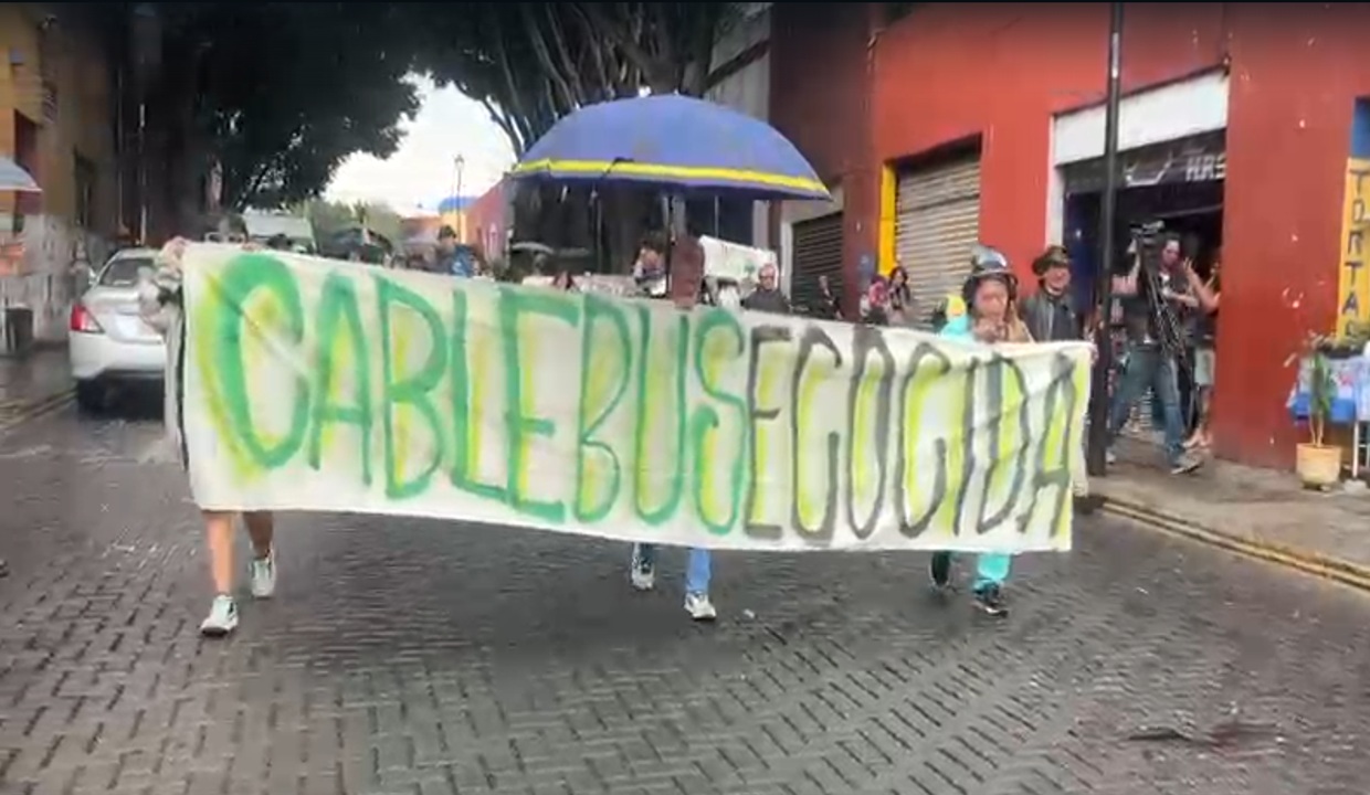 VIDEO: Nuevamente, poblanos se manifiestan CONTRA el Cablebús pese a la lluvia de hoy 16 de marzo de 2026; exigen a Alejandro Armenta su CANCELACIÓN