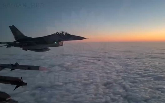 Вечірнє патрулювання українського неба парою винищувачів F-16 Повітряних сил ЗСУ. ВIДЕО