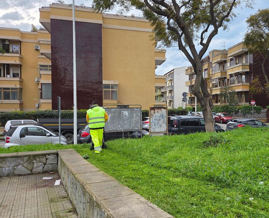 Operai in azione per la sistemazione dell’area verde