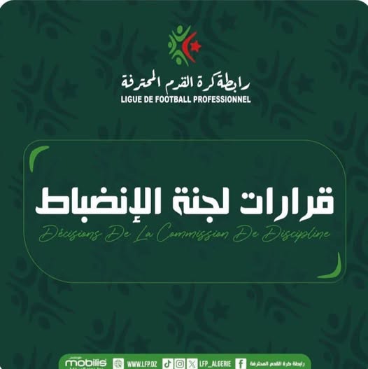 أصدرت لجنة الانضباط التابعة للرابطة المحترفة لكرة القدم قراراتها في القضايا المطروحة أمامها بخصوص مباريات الجولة الماضية من البطولة الوطنية، كان أبرزها القرار الذي يتعلق بمهاجم شبيبة القبائل، بلال مسعودي. وقررت لجنة الانضباط تسليط عقوبة الإيقاف أربع مباريات في حق بلال مسعودي، إحداها غير نافذة، إضافة إلى غرامة مالية قدرها 40 ألف دينار، وذلك […] The post لجنة الانضباط توقف مهاجم شبيبة القبائل 4 مباريات appeared first on النهار أونلاين .