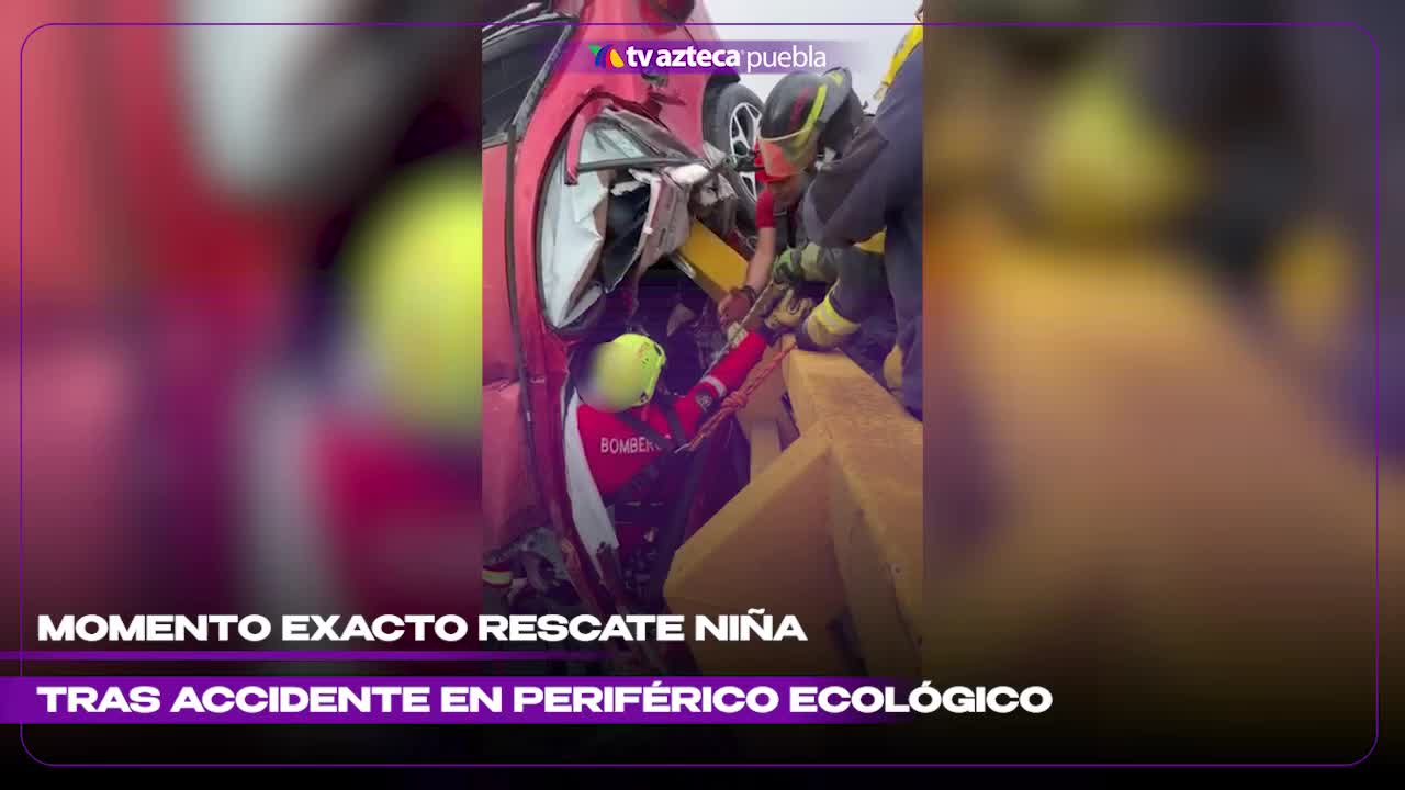 Un auto quedó colgado sobre el Periférico Ecológico en Puebla con cuatro personas adentro. El rescate de una niña de 5 años quedó captado en video.