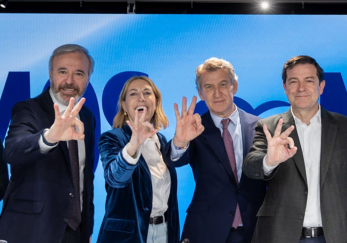 No lo hicieron público, pero el líder del PP y los tres presidentes autonómicos pendientes de desbloquear sus gobiernos -María Guardiola, Jorge Azcón y Alfonso Fernández Mañueco- se reunieron después de la Junta Directiva Nacional en privado a la hora del almuerzo. Lo hicieron en un restaurante cercano a la sede de Génova y a la cita también acudieron el secretario general, Miguel Tellado; y la jefa de gabinete de Alberto Núñez Feijóo, Marta Varela. Los dos designados por la dirección nacional para negociar con Vox. Los tres barones regionales mantienen la incertidumbre sobre los planes de Santiago Abascal en sus ejecutivos. Lo que viene repitiendo Vox estos días -lo volvió a hacer ayer su líder- es que lo primero... Ver Más