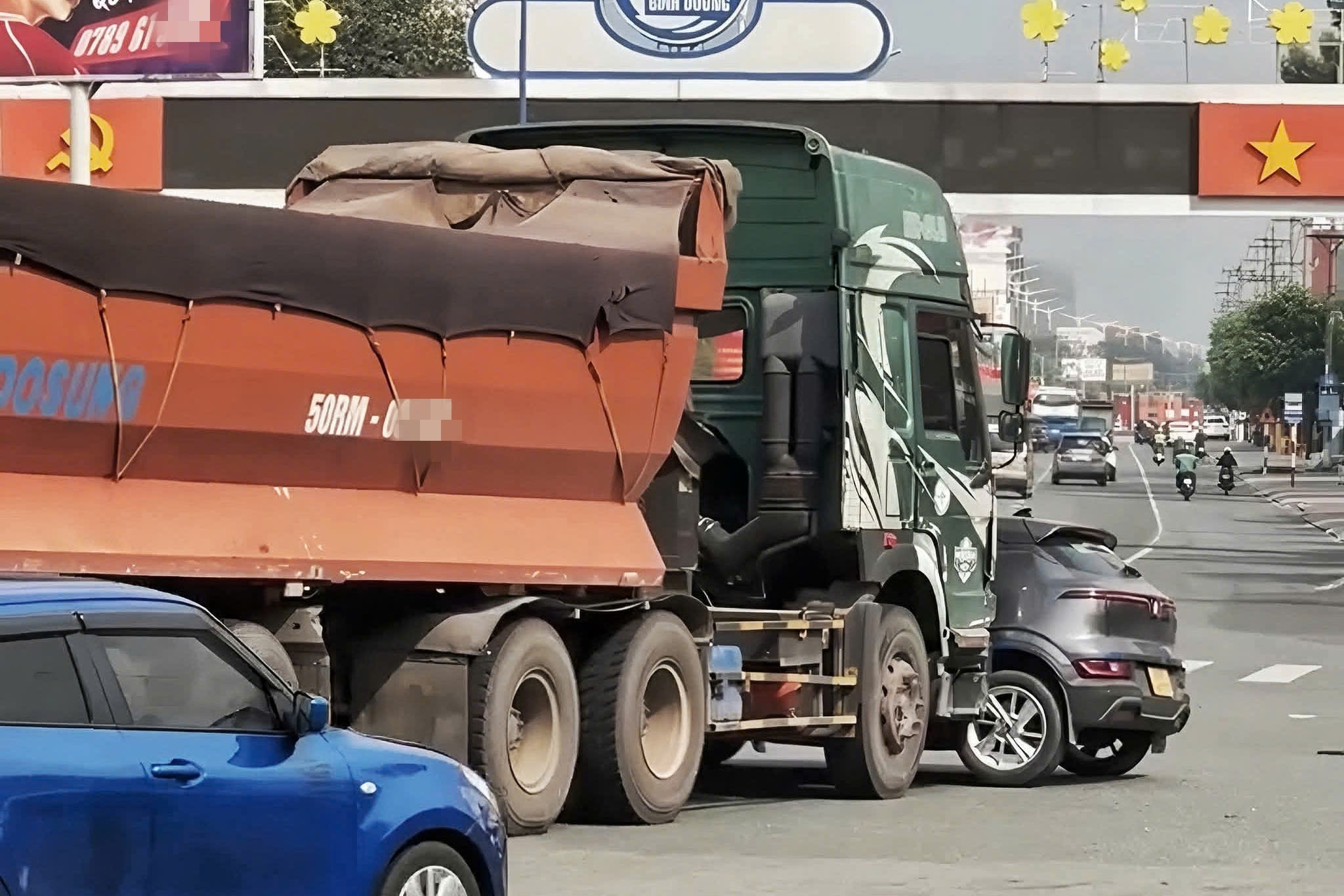 (Dân trí) - Nhà chức trách xác định, tài xế ô tô khi rẽ trái vào vòng xoay tại phường Thủ Dầu Một (TPHCM) đã thiếu quan sát, dẫn đến va chạm với xe đầu kéo chạy phía sau và bị đẩy đi khoảng 15m.