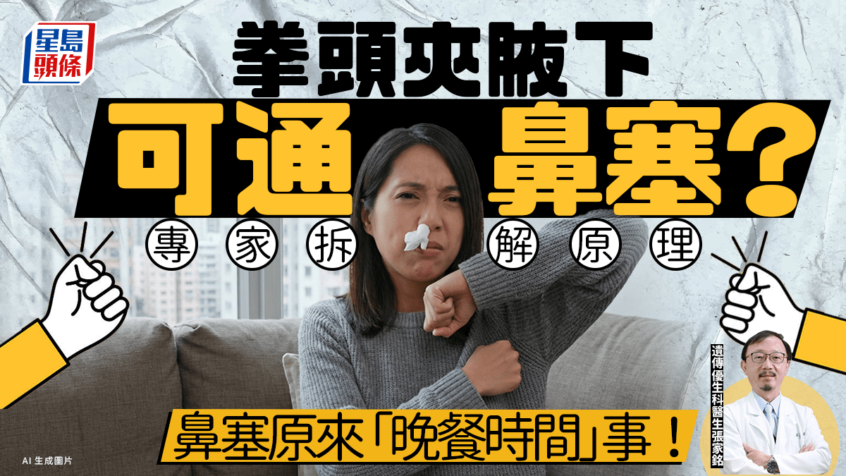 不少人無病無痛、呼吸順暢,卻常常躺下入睡前出現鼻塞。網上流傳一個小技巧:如果一邊鼻子不通,把拳頭夾在另一側腋下約20秒,原本塞住的鼻子會順暢。專家分析,這個方法背後確有依據,但更值得關注的是:為什麼現代人晚上睡覺特別容易鼻塞? 拳頭夾腋下為何有效?鼻塞未必因為鼻涕多 遺傳優生科醫生張家銘近日在個人專頁發文分析「拳頭夾腋下20秒通鼻塞」背後的原理及機制。張醫生解釋,當腋下受到壓力刺激時,會影響身體的