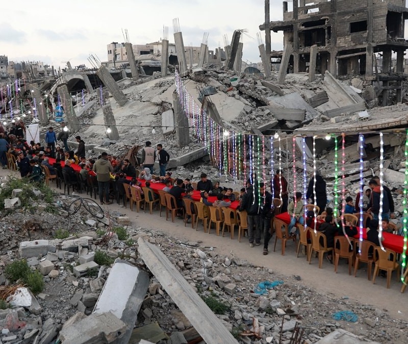 Gazze'de yıkıntıların arasında iftar