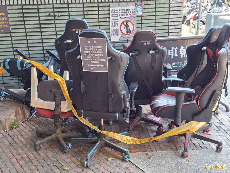 竹市建國公園出現遭棄電競椅 養工處將清運