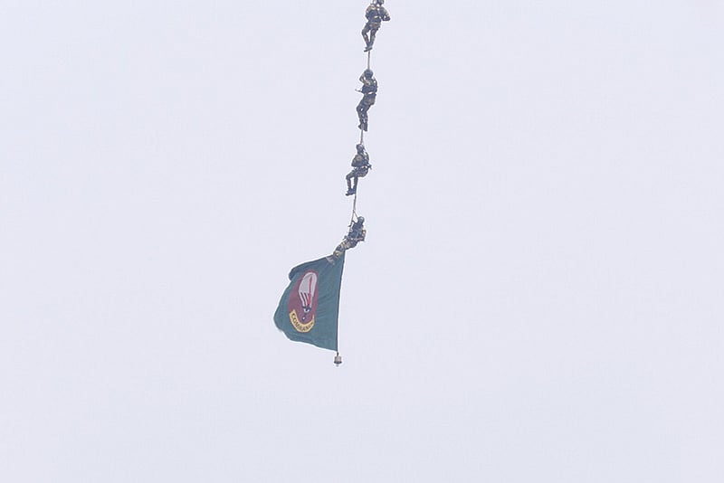 দড়িতে ঝুলে আকাশে ভেসে বেড়ানোর দক্ষতা দেখালেন দুঃসাহসিক সেনাসদস্যরা