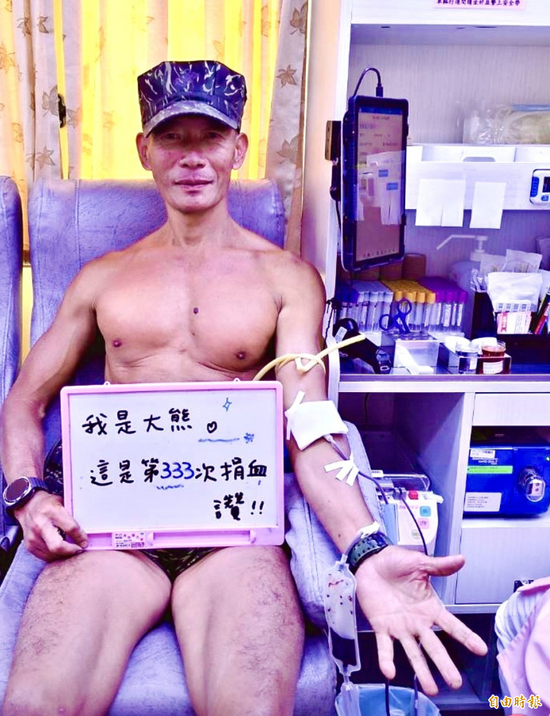 台中退役蛙人一年365天打赤膊 破紀錄捐血333次