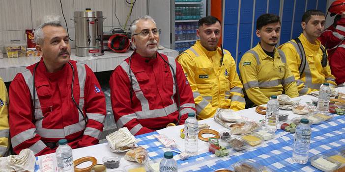Çalışma ve Sosyal Güvenlik Bakanı Vedat Işıkhan, Rize'nin Çayeli ilçesindeki Çayeli Bakır İşletmelerinde yerin 320 metre altındaki bakır madeninde işçilerle sahur yaptı.