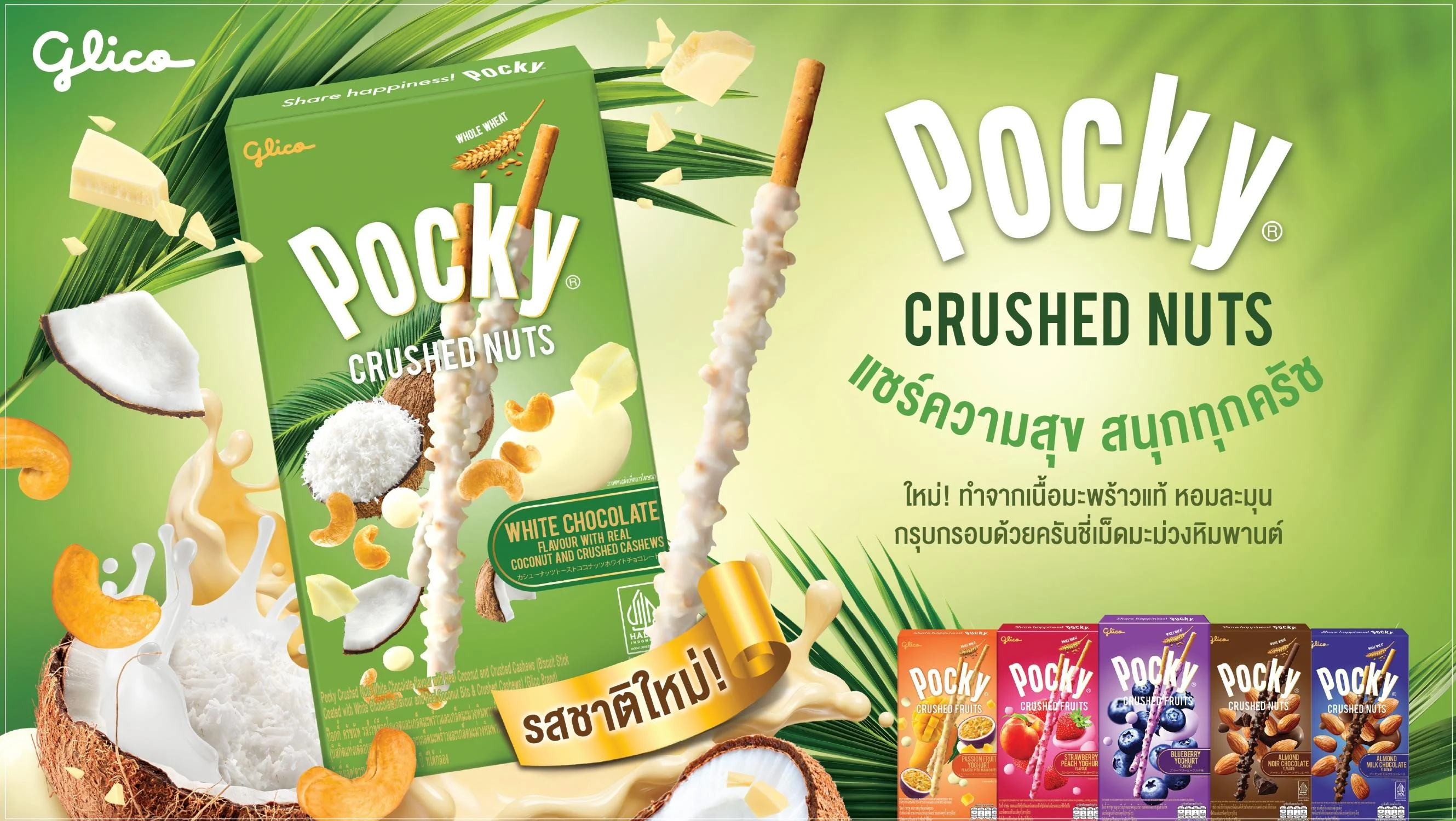ไทยกูลิโกะ เปิดตัว “ป๊อกกี้ ครัชนัท รสใหม่ ไวท์ช็อกโกแลตผสมเกล็ดมะพร้าวและเกล็ดมะม่วงหิมพานต์แท้” เวลคัมช่วงซัมเมอร์นี้