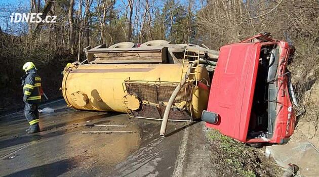 Cisterna převážející kaly havarovala v úterý ráno u Kácova na Kutnohorsku. Po nárazu do skály se vůz převrátil na bok. Silnice mezi Kácovem a Zderadinkami je neprůjezdná, „“policisté odklánějí dopravu. Řidič tatry skončil v nemocnici s tržným poraněním hlavy.