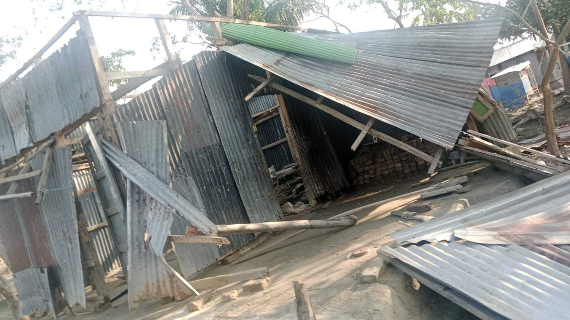 ভোলার চরফ্যাসনে আকস্মিক ঝড়ে অর্ধশতাধিক ঘরবাড়ি ক্ষতিগ্রস্ত হয়েছে। এর মধ্যে ১০টি বসতঘর সম্পূর্ণ বিধ্বস্ত ও ৪০টি ঘরের আংশিক ক্ষতি হয়েছে। উপড়ে পড়েছে অসংখ্য গাছপালা। এতে দুর্ভোগে পড়েছেন ক্ষতিগ্রস্ত বাসিন্দারা।সোমবার (১৬ মার্চ) রাত ২টার দিকে হঠাৎ করেই ঝড় আঘাত হানে সাগরকুলের ইউনিয়ন ঢালচরে। ঝড়ের সঙ্গে সঙ্গে গুঁড়ি গুঁড়ি শিলাবৃষ্টিও হয়। এ সময় অনেক ঘরের চাল-বেড়া উড়ে যায়।এ বিষয়ে ঢালচর ১ নম্বর ওয়ার্ডের বাসিন্দা মফিজ জানান, প্রতিদিনের মত ওইদিন রাতে তার পরিবারের সদস্যদের নিয়ে খাবার খেয়ে ঘুমিয়ে পড়েন। সেহেরির আগমুহূর্তে দক্ষিণ থেকে ধেঁয়ে আসা তীব্র গতির বাতাসে তার বসতঘরের চালা উড়ে যায়। ঈদের তিন দিন আগে মাথাগোঁজার ঠাঁই হারিয়ে এখন তারা অসহায়। পরিবারের ঈদ আনন্দ কেড়ে নিয়েছে।আরও পড়ুন: গাইবান্ধায় আকস্মিক ঝড়ে ৫ শতাধিক ঘর লন্ডভন্ডএকইভাবে ঢালচরের কয়েকটি ওয়ার্ডের বাসিন্দা, মো. হাসান, মো. ইব্রাহিম, মো. জসিম, আক্তার, মো. রিয়াজ, শাহিন হাওলাদার, মো. আনোয়ার ও মো.গিয়াস উদ্দিনের বাড়িঘর ক্ষতিগ্রস্ত হয়েছে বলে জানান তারা।চর মানিকা ইউনিয়ন চর কচ্চপিয়া বাজারের ব্যবসায়ী সেলিম হাওলাদার জানান, ঝড়ে তার দোকান ঘরের চালা উড়ে গেছে।আরও পড়ুন: ৩৫ সেকেন্ডের ঝড়ে লন্ডভন্ড নীলফামারী, ঘরে ঘরে কান্নার রোলঢালচর ইউনিয়ন পরিষদের প্রশাসক ও ঢালচর রেঞ্জার মুইনুল হাসান জানান, হঠাৎ ঝড়ে প্রায় ঢালচরে ৩০টি ঘরবাড়ি ক্ষতিগ্রস্ত হয়েছে। এসব ক্ষতির বিষয়ে উপজেলা প্রশাসনকে অবগত করা হয়েছে।চরফ্যাসনের উপজেলা নির্বাহী কর্মকর্তা (ভারপ্রাপ্ত) এমাদুল হোসেন জানান, ক্ষয়ক্ষতির সঠিক পরিমাণ নিরূপণের কাজ চলছে। দুর্গম এলাকা হওয়ায় এখনও তালিকা চূড়ান্ত হয়নি। তালিকা শেষে ক্ষতিগ্রস্ত পরিবারগুলোকে প্রয়োজনীয় সহায়তা দেয়া হবে।