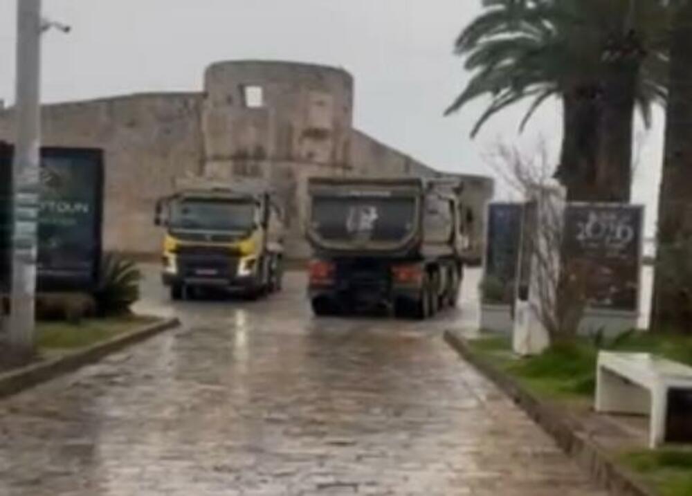Budva: Teške građevinske mašine ispred zidina Starog grada,...