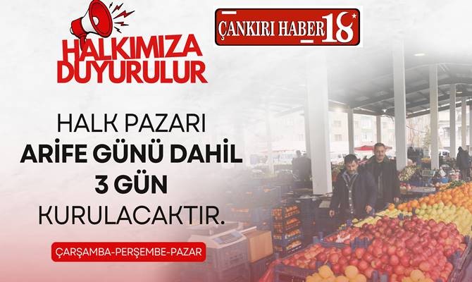 Çankırı Şehir Merkezinde Halk Pazarı Arife Dahil Üç Gün Kurulacak