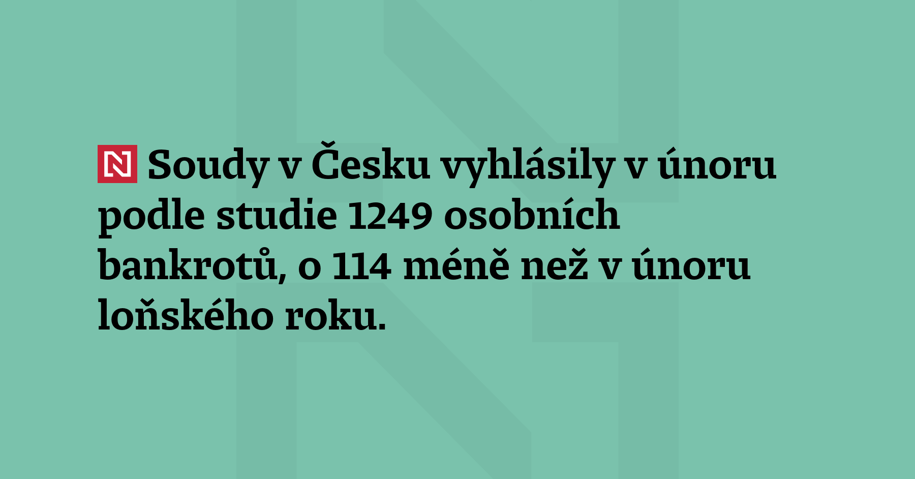 Soudy v Česku vyhlásily v únoru podle studie 1249 osobních bankrotů, o 114 méně než v únoru loňského roku. O 123 na 1384 ubylo meziročně návrhů na ně. (ČTK)