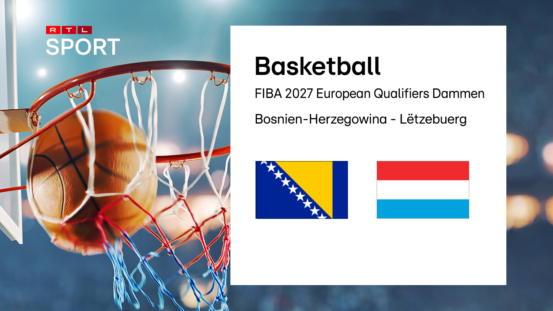 Am Basket huet d'Lëtzebuerger Dammennationalekipp um 20 Auer de sechste Match an der Qualifikatioun fir d'EM 2027 géint Bosnien-Herzegowina