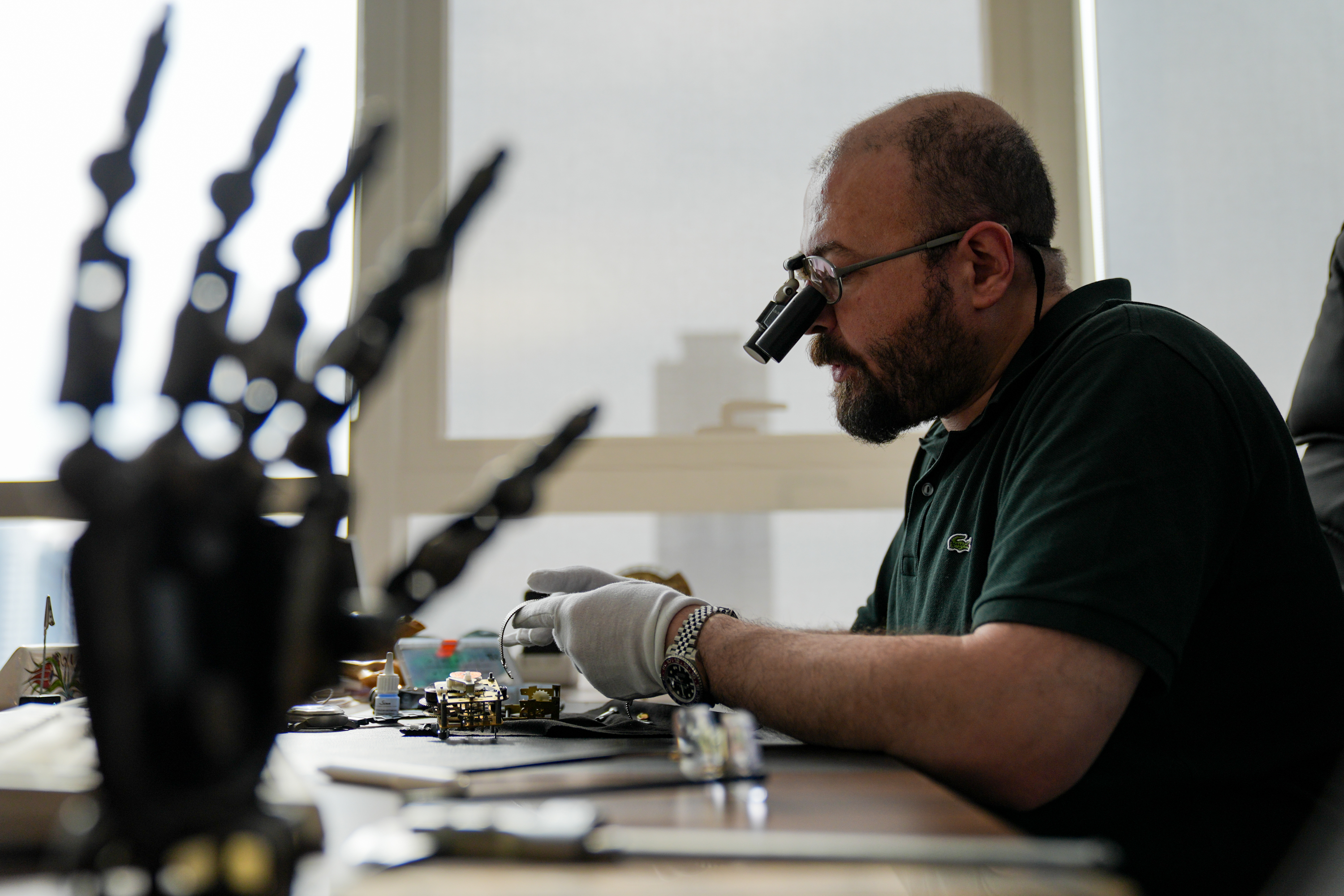 Ameliyat eder gibi tamir ediyor. Riskli ameliyatlarına saat tamir ederek hazırlanıyor