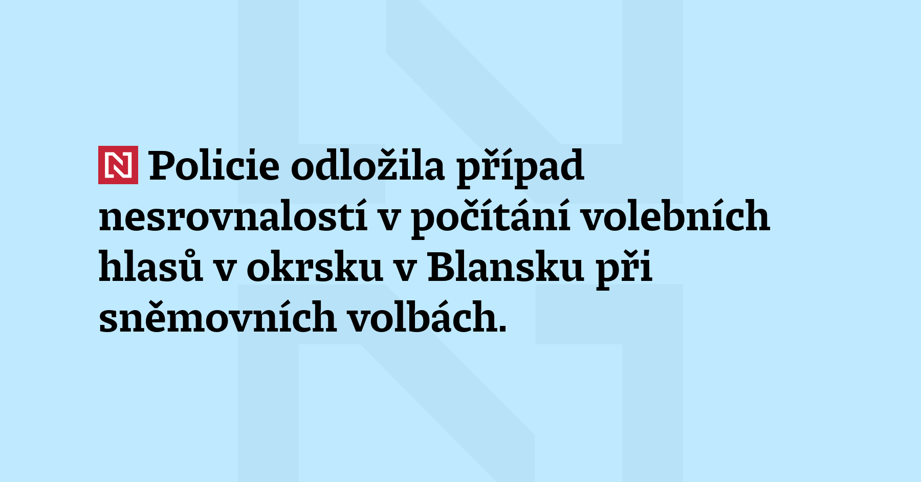 Policie odložila případ nesrovnalostí v počítání volebních hlasů v okrsku v Blansku při sněmovních volbách. Nebylo prokázáno, že by šlo o úmysl. (ČTK)