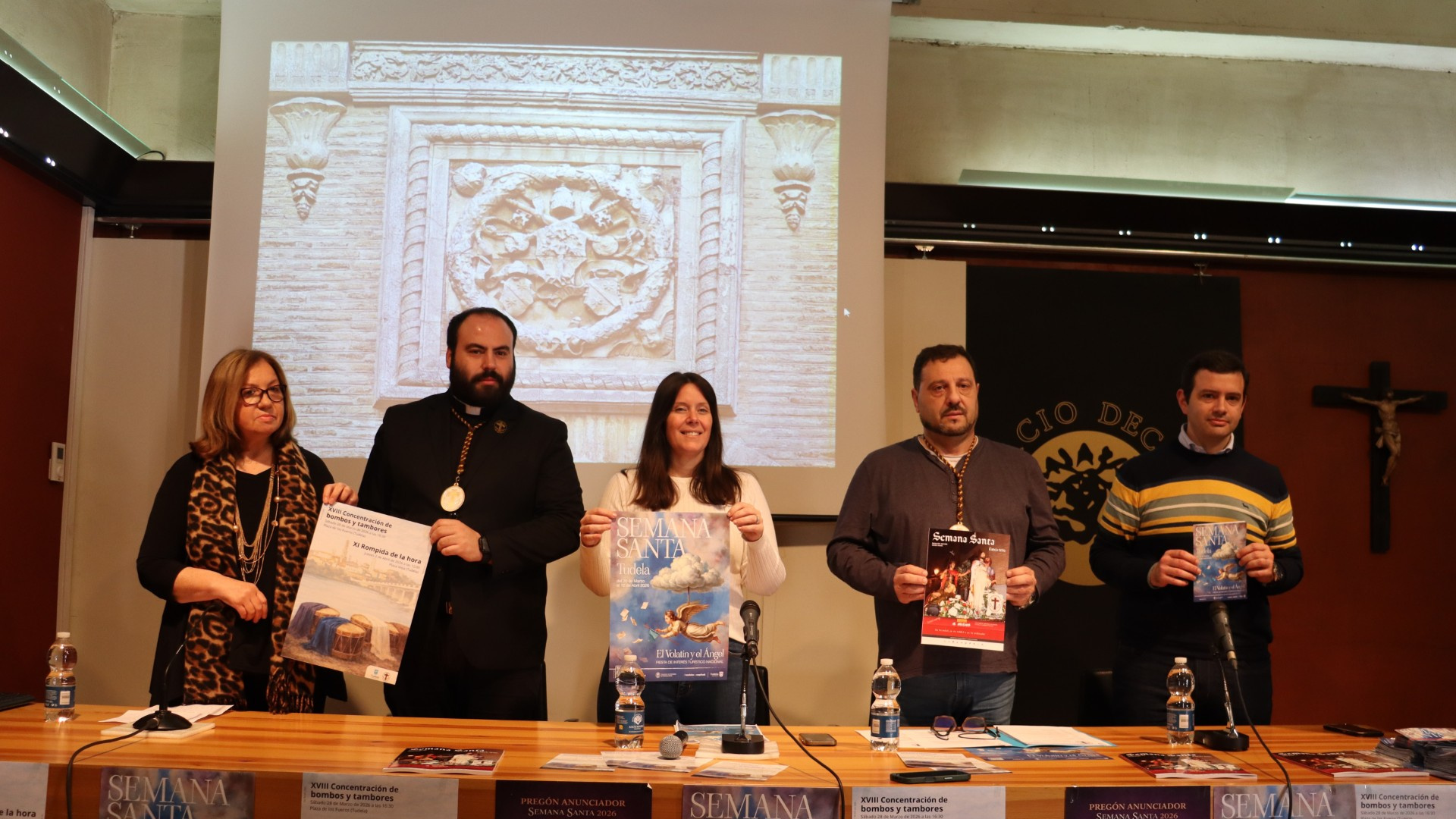 El Ayuntamiento de Tudela ha presentado el programa oficial para la Semana Santa 2026, cuyos actos principales se desarrollarán entre el 20 de marzo y el 12 de abril. La presentación ha corrido a cargo de la concejala de Turismo, Irune García, quien ha estado acompañada por representantes de la Asociación de Cofradías de Tudela. Una de las grandes novedades de este año es el nombramiento de la Hermandad de la Pasión Viviente de Tudela como pregoneros del Día del Volatín. La concejala Irune García ha subrayado que este reconocimiento es “merecidísimo” por el trabajo que la hermandad ha realizado durante años y por lo que su labor representa para la ciudad. En nombre de la hermandad, Mercedes Pérez ha intervenido para agradecer públicamente la oportunidad de poder pronunciar este pregón tan señalado dentro de la Semana Santa tudelana. Por su parte, Pedro Martínez, vicepresidente de la Asociación de Cofradías, ha detallado que el programa incorpora novedades cada año. Para esta edición, ha destacado el cambio en el recorrido del pregón con el fin de acercar este tradicional acto a un mayor número de personas. La programación también incluye los eventos del Día del Volatín y del Día del Ángel, organizados directamente por el Ayuntamiento. Finalmente, el capellán Héctor Arratibel ha sido el encargado de explicar los detalles de los oficios religiosos que tendrán lugar durante toda la semana.