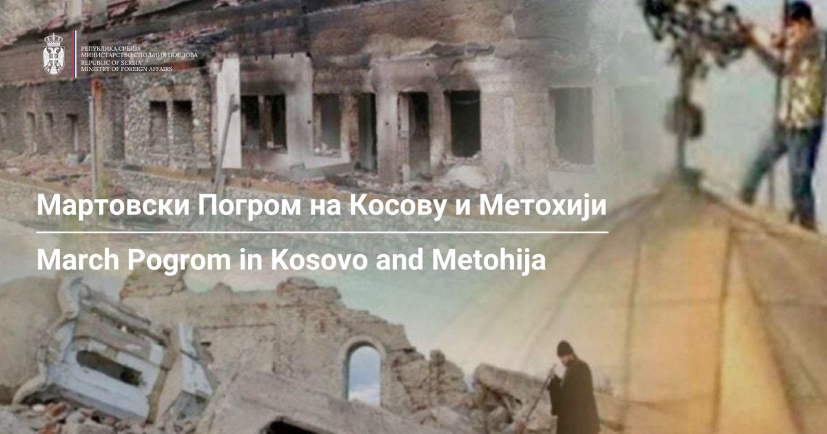 Ministri i Punëve të Jashtme të Serbisë, Marko Gjuriq, tha se më 17 dhe 18 mars 2004, trashëgimia shpirtërore dhe kulturore e krishterë e popullit serb në Kosovë, e ndërtuar dhe e ruajtur me shekuj, iu nënshtrua dhunës së përhapur dhe të koordinuar, duke deklaruar se vuajtjet e viktimave dhe shkalla e shkatërrimit nuk duhen harruar.