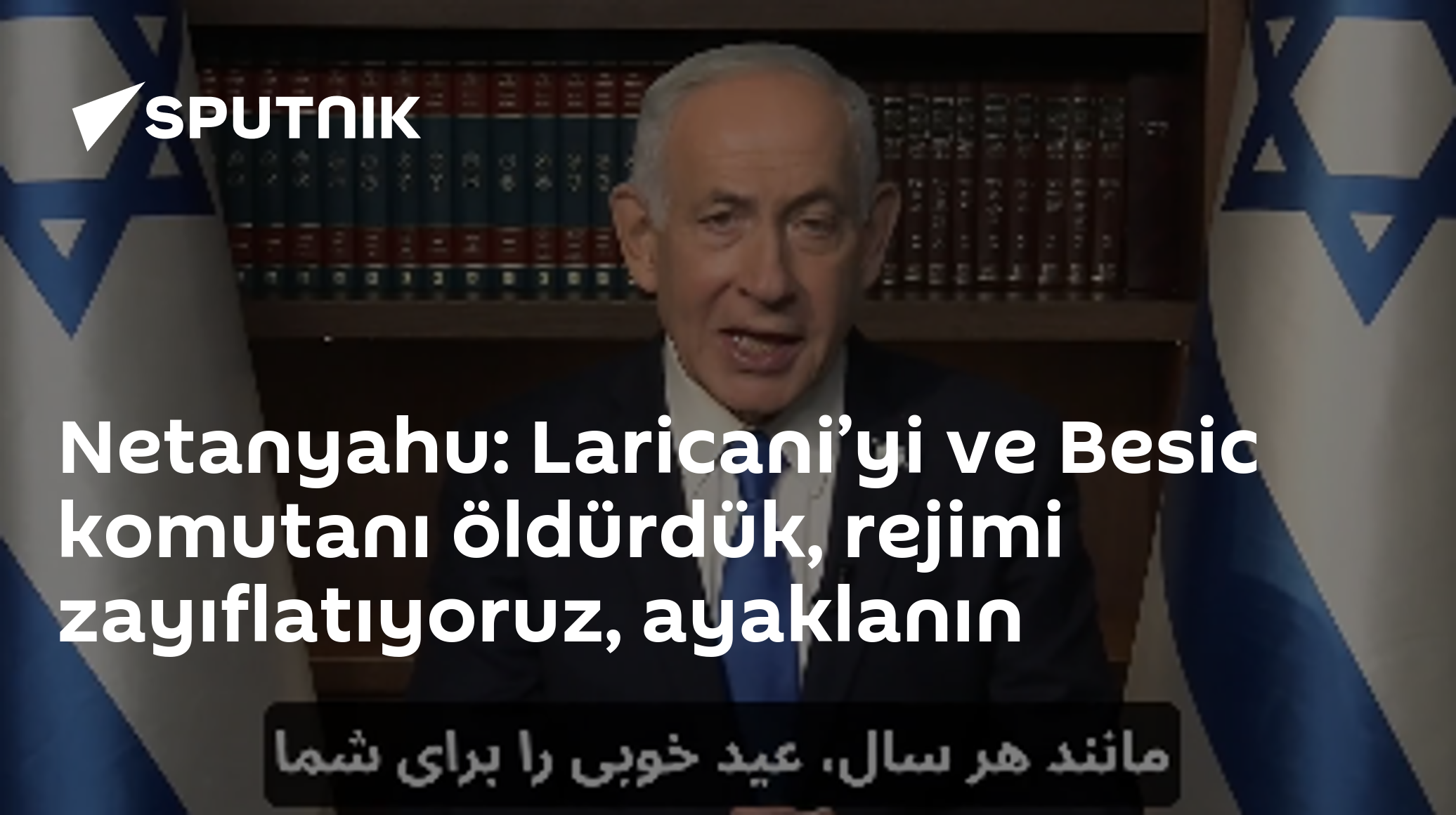İsrail Başbakanı Netanyahu, sosyal medya hesabından yeni videolu mesajında Ali Laricanive Basij komutanını ortadan kaldırdık. Bu rejimi zayıflatıyoruz” ifadelerini kullandı.
