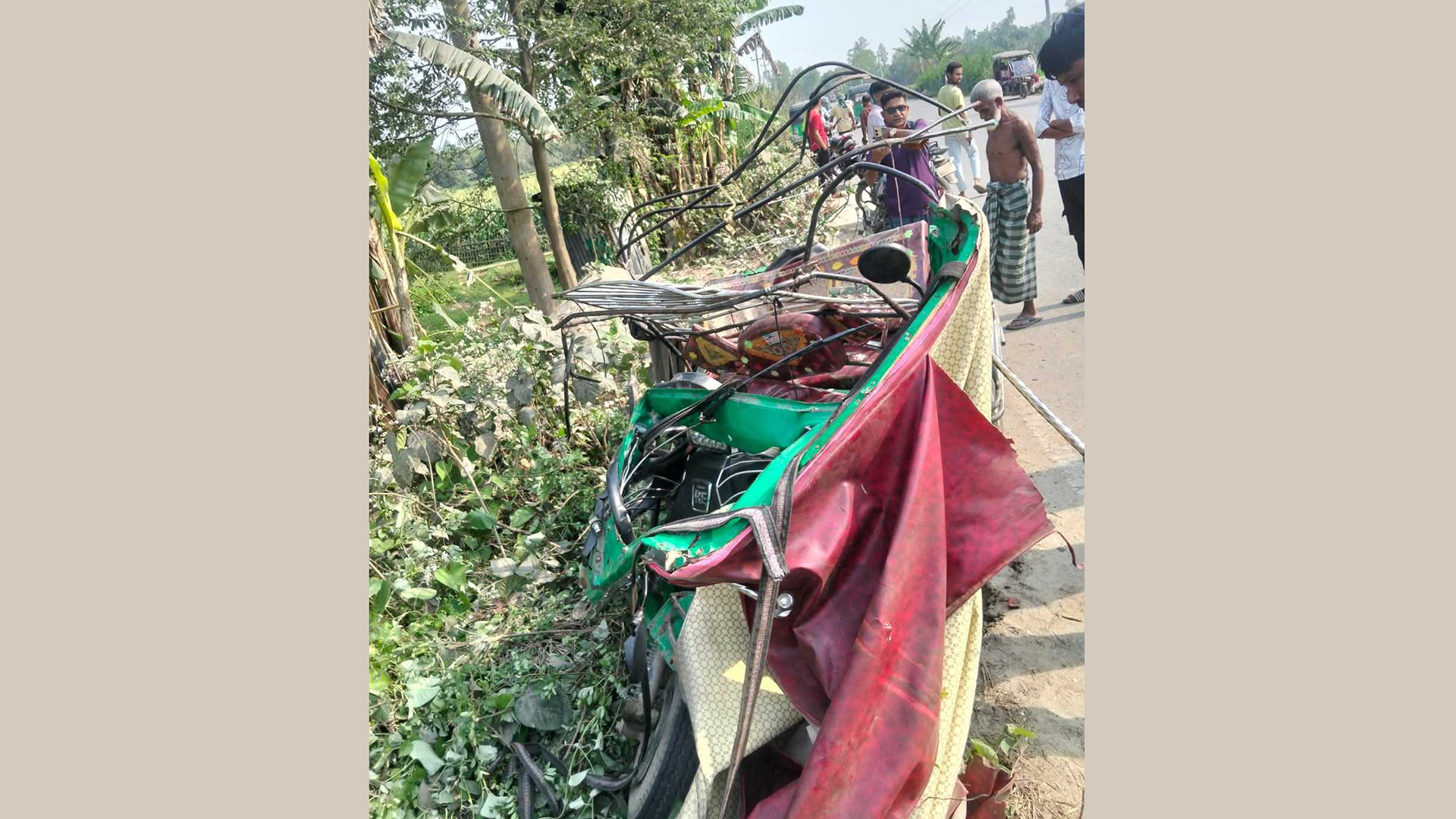 টাঙ্গাইলের ধনবাড়ীতে বাসচাপায় সিএনজিচালিত অটোরিকশা অটোরিকশা দুমড়ে-মুচড়ে তিন যাত্রী নিহত হয়েছেন। মঙ্গলবার (১৭ মার্চ) বিকেল সাড়ে ৩টার দিকে উপজেলার নল্যা বাসস্ট্যান্ডের নলহরা এলাকায় এ দুর্ঘটনা ঘটে।নিহতরা হলেন: ধনবাড়ী উপজেলার সেনবাড়ী গ্রামের মৃত মোহাম্মদ আলীর ছেলে সিএনজিচালিত অটোরিকশাচালক আকবর আলী (৫৫), অটোরিকশাযাত্রী জামালপুরের বাংগালীপাড়া গ্রামের মৃত তোরাব আলী মুন্সীর ছেলে মো. ওমর ফারুক (৫০) এবং সরিষাবাড়ী উপজেলার কামরাবাদ গ্রামের আব্বাস মিয়ার ছেলে মো. খোকন মিয়া (৬০)।আরও পড়ুন: যশোরে বাসচাপায় মা নিহত, আহত ছেলেএ তথ্য নিশ্চিত করেছেন ধনবাড়ী থানার ভারপ্রাপ্ত কর্মকর্তা (ওসি) নূরুস সালাম সিদ্দিক।তিনি জানান, বিকেলে জামালপুর থেকে যাত্রী নিয়ে সিএনজিচালিত একটি অটোরিকশা মধুপুর যাচ্ছিল। এ সময় ধনবাড়ী উপজেলার নল্যা বাসস্ট্যান্ড এলাকায় পৌঁছালে বিপরীত দিক থেকে আসা একটি যাত্রীবাহী বাস চাপা দেয়। এতে ঘটনাস্থলেই অটোরিকশা দুমড়ে-মুচড়ে চালক ও দুই যাত্রী নিহত হন।