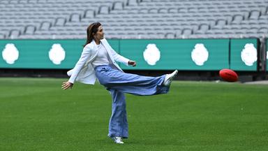 Royale Power auf dem Football-Terrain: An Tag vier ihrer Australien-Reise trainiert die dänische Königin mit Nachwuchsspielern in Melbourne. Dabei legt sie selbst vollen Einsatz an den Tag.