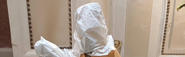 Uno dei custodi ha fatto scattare l'allarme ed ha chiamato i carabinieri: agli investigatori la donna non ha saputo spiegare i motivi del suo gesto