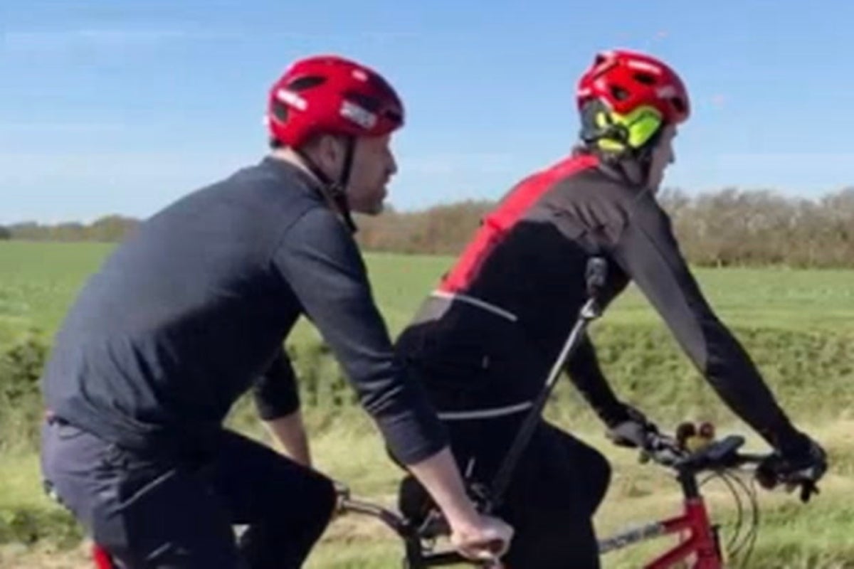 Prince William surprises Greg James on gruelling Comic Relief tandem bike challenge