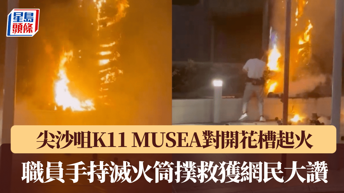 尖沙咀發生火警。今晚(17日)約8時許,梳士巴利道K11 MUSEA對開一個花槽突然起火,火勢迅速蔓延至旁邊圍牆,火光熊熊,遠處亦清晰可見。現場一度濃煙瀰漫,有職員手持滅火筒衝出協助撲救,期間因煙霧過濃需短暫退開,其後再嘗試控制火勢,但未能成功將火完全撲熄。 消防接報後迅速到場,立即開喉灌救,未幾將火救熄。事件中無人受傷,毋須疏散。據了解,火警疑有人遺下未熄滅的煙蒂引起。 從現場圖片及網上流傳的影