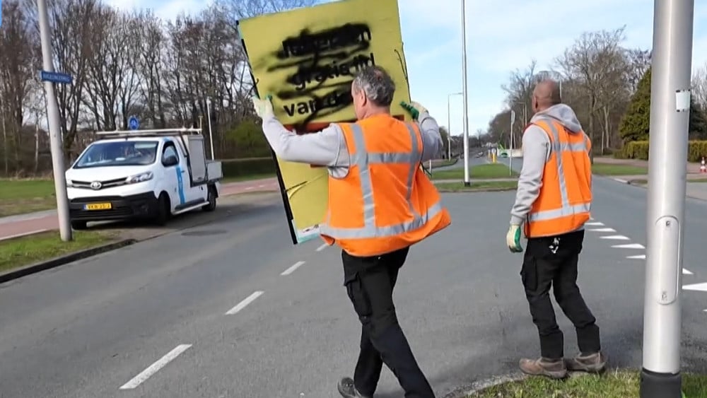 De gemeente Velsen wil tien- tot twintigduizend euro aan opruimkosten verhalen op Forum voor Democratie en eventuele andere 'wildplakkers' van verkiezingsposters. Er hingen tientallen posters op plekken die daar niet voor aangewezen waren. Het zou zorgen voor oneerlijke concurrentie. "De vervuiler betaalt, toch?", vindt een Velsenaar. "Ik vind het niet gek dat hier regels voor zijn", zegt een man uit Santpoort, dat in de gemeente Velsen ligt. Hij wijst naar een weggekrabde poster op een elektriciteitskastje. "Andere dingen plak je ook niet overal op, waarom een verkiezingsposter wel?" En die regels zijn er: politieke partijen mogen in verkiezingstijd reclame maken op daarvoor bestemde plekken. "En daar betalen ze ook voor", legt burgemeester Frank Dales van Velsen uit in bovenstaande video. Toch waren er in de afgelopen week vele nieuwe, illegaal geplakte posters te zien, met daarbij opvallend veel posters van Forum voor Democratie. Ze waren voornamelijk te zien op de wegen die van het stadhuis in IJmuiden, via Driehuis naar Santpoort voeren. FvD weet van niets Maar plaatselijk lijsttrekker Tommy Panis wast zijn handen in onschuld: "Wij weten niet wie deze posters heeft aangebracht", zegt hij in een reactie. Hij vervolgt: "In de praktijk is sowieso op geen enkele manier vast te stellen wie verantwoordelijk is voor het plakken van individuele posters in de openbare ruimte. FVD instrueert vrijwilligers altijd nadrukkelijk om zich aan de geldende regels te houden bij het voeren van campagne en daar wijzen wij hen ook actief op." Tekst loopt door onder de afbeelding. Na een aangifte besloot de gemeente om alle illegale posters weg te halen. "Dat kost naar schatting 10.000 tot 20.000 euro", zegt de gemeente. Die kosten wil ze nu op FvD en eventuele andere schuldigen gaan verhalen. Dales: "Hoewel de partij zegt er niets mee te maken te hebben, staat hun naam wél op de poster." Het klinkt de Santpoortenaar niet gek in de oren: "De vervuiler betaalt toch?"