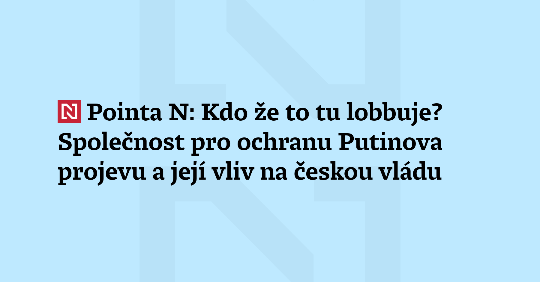 Pointa N: Zabouchli jste si klíče? Voláte zámečníka. Potřebujete radu ohledně svobody slova? Vyhledáte fanouška Vladimira Putina. Kdo radí premiérovi ohledně svobody projevu? Komentuje Vítek Svoboda.