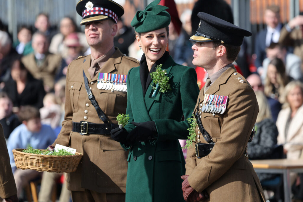 17 березня принцеса Уельська — Кейт Міддлтон — у День святого Патріка долучилася до параду Ірландської гвардії. Про це пише видання People. Відповідно до традицій принцеса подарувала гілочки трилисника офіцерам і гвардійцям, а також полковому талісману — ірландському вовкодаву. По завершенню заходу Кейт Міддлтон нагородила військових медалями за вислугу років та бездоганну поведінку й зустрілася […] The post “Полковник Кетрін”: як принцеса Уельська відвідала парад Ірландської гвардії appeared first on Прямий .