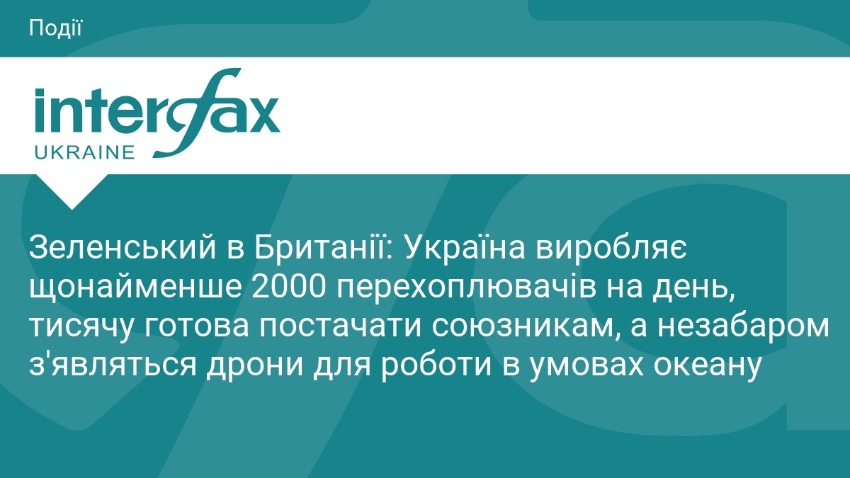 Зеленський в Британії: Україна виробляє щонайменше 2000 перехоплювачів на день, тисячу готова постачати союзникам, а незабаром з'являться дрони для роботи в умовах океану