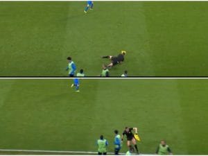Durante Arsenal-Bayer Leverkusen il guardalinee olandese viene inquadrato mentre cade incredibilmente in campo travolto dallo scontro con alcuni calciatori tedeschi. Continua a leggere
