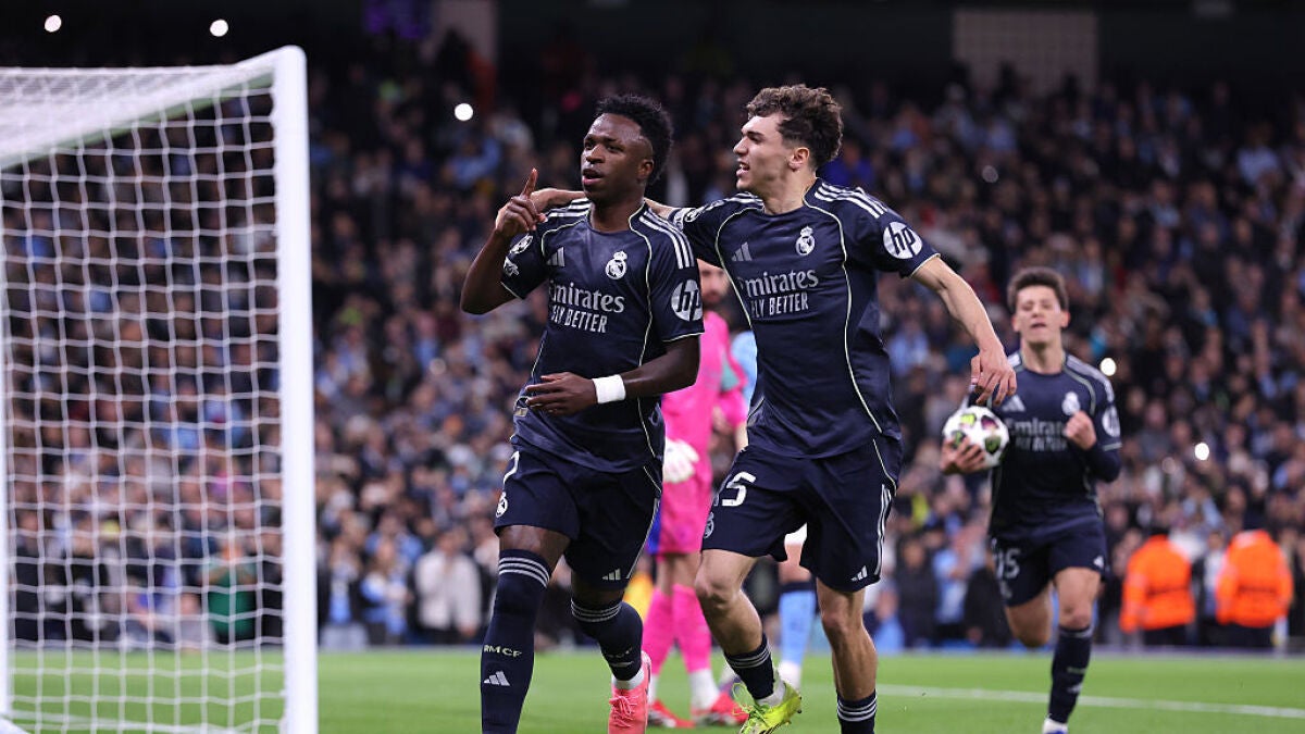 Un doblete de Vinicius da la victoria al Real Madrid ante un Manchester City que jugó desde el minuto 20 con un hombre menos.