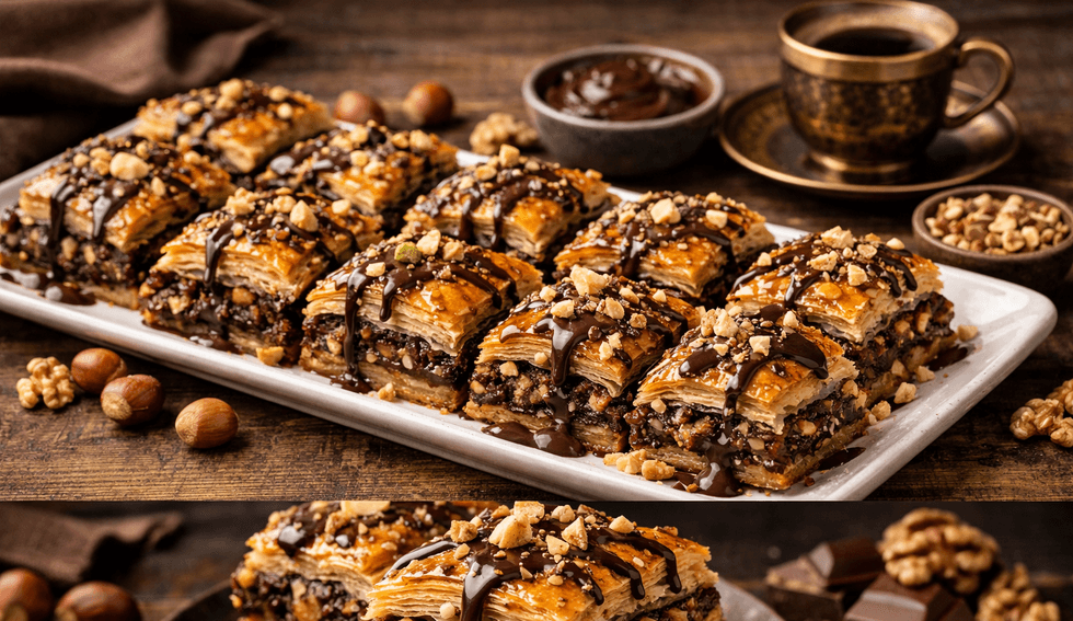 Kombinimi ideal i krokantes, aromës së arrave dhe finesës së çokollatës për një ëmbëlsirë festive të paharrueshme Bakllavaja është sinonim i festave, por kur asaj i shtohet çokollata dhe një kombinim i zgjuar i lajthisë dhe arrës, ajo shndërrohet në një ëmbëlsirë më të pasur, më të balancuar dhe më moderne. Kjo recetë ruan shpirtin tradicional, duke sjellë njëkohësisht një dimension të ri shijeje që i përshtatet çdo tryeze festive. Bakllavaja me çokollatë, lajthi dhe arra është një version i përkryer i ëmbëlsirës tradicionale, ku shijet klasike dhe moderne bashkohen në harmoni të plotë. Ajo është zgjedhja ideale për festat e Bajramit dhe për çdo rast kur dëshironi të ofroni diçka ndryshe, por njëkohësisht familjare, transmeton Telegrafi. Përbërësit Për petët: 500 g kore për bakllava 200–250 g gjalpë i shkrirë Për mbushjen 200 g lajthi të bluara 150 g arra të bluara 100 g çokollatë (qumështi ose për gatim; sipas dëshirës edhe çokollatë e zezë) 2 lugë kakao pluhur 2 lugë sheqer 1 lugë çaji vanilje Kombinimi lajthi + arra krijon ekuilibrin perfekt mes aromës dhe strukturës. Për sherbetin: 250 g sheqer 250 ml ujë 1 lugë gjelle mjaltë 1 lugë çaji kakao (opsionale) 1 lugë gjelle lëng limoni Përgatitja hap pas hapi 1. Përgatitja e mbushjes Në një enë përzieni lajthitë dhe arrat me kakaon, sheqerin dhe vaniljen. Shtoni në fund copëzat e çokollatës dhe përziejini lehtë. Mbushja duhet të jetë aromatike dhe jo shumë e imët. 2. Shtresimi Lyeni tepsinë me gjalpë Vendosni 3–4 petë dhe lyeni secilën me gjalpë Shtoni një shtresë të hollë të mbushjes Vazhdoni njësoj deri në fund Përfundoni me 3–4 petë sipër Priteni në rombe ose katrorë para pjekjes. 3. Pjekja Piqeni në 170°C për 45–60 minuta, derisa të marrë ngjyrë të artë dhe të bëhet krokante. 4. Përgatitja e sherbetit Zieni ujin dhe sheqerin për rreth 10 minuta. Shtoni mjaltin dhe kakaon (nëse e përdorni), përziejini dhe në fund shtoni lëngun e limonit. Sherbeti duhet të jetë pak më i trashë se ai klasik. 5. Kombinimi final Menjëherë pasi bakllava të dalë nga furra, hidhni mbi të sherbetin e nxehtë. Lëreni të pushojë 6–8 orë (ideal gjatë natës) që të përthithë shijet. Këshilla për rezultat perfekt Përdorni kombinimin lajthi + arra për shije më të pasur Nëse përdorni çokollatë qumështi, ulni pak sheqerin Për shije më intensive përdorni çokollatë të zezë Mos e teproni me sherbet që të ruhet krokantja Sugjerim servirjeje Kjo bakllavë shoqërohet në mënyrë perfekte me: kafe të zezë çaj Për dekor: lajthi ose arra të grimcuara pak çokollatë të shkrirë sipër Ju bëftë mirë. /Telegrafi/