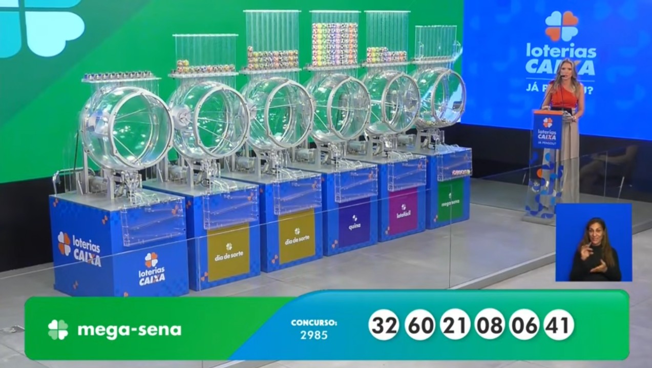 A Caixa Econômica Federal realizou nesta terça-feira o sorteio do concurso 2.985 da Mega-Sena, com um prêmio de R$ 104.568.157,59. As dezenas sorteadas foram: 32 - 60 - 21 - 08 - 06 - 41. O próximo sorteio será realizado na quinta-feira (19). Imposto de Renda 2026: veja datas importantes IR 2026: quem precisa declarar? Confira regras As apostas para a Mega-sena podem ser feitas até as 20h do dia do concurso, nas casas lotéricas credenciadas, pela internet ou no aplicativo da loteria. Os sorteios ocorrem às 21h, no Espaço da Sorte, em São Paulo (SP), e contam com transmissão ao vivo pelas redes sociais da instituição. O palpite mínimo custa R$ 6,00. Além desse modelo de aposta, com seis números selecionados, que paga o prêmio principal, ainda é possível ganhar prêmios ao acertar quatro ou cinco dezenas. Bolão O Bolão Caixa é a possibilidade que o apostador tem de realizar apostas em grupo. Basta preencher o campo próprio no volante ou solicitar ao atendente da lotérica. Na Mega-Sena, os bolões têm um preço mínimo de apenas R$ 18,00, com cada cota a partir de R$ 6,00. Veja os dez maiores prêmios sorteados na História da Mega-sena: Concurso 2.525 (01/10/2022) — R$ 317.853.788,54 Concurso 2.150 (11/05/2019) — R$ 289.420.865,00 Concurso 2.237 (27/02/2020) — R$ 211.652.717,74 Concurso 2.795 (09/11/2024) — R$ 207.460.095,00 Concurso 2.696 (05/03/2024) — R$ 206.475.189,75 Concurso 1.764 (25/11/2015) — R$ 205.329.753,89 Concurso 1.772 (22/12/2015) — R$ 197.377.949,52 Concurso 2.464 (19/03/2022) — R$ 189.381.872,36 Concurso 2.745 (04/07/2024) — R$ 162.788.325,19 Concurso 2.979 (03/03/2026) — R$ 158.039.482,13 Initial plugin text