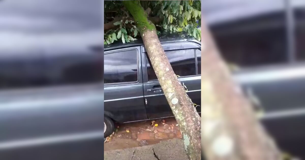 Temporal atinge Rosário do Ivaí e árvore cai sobre carro