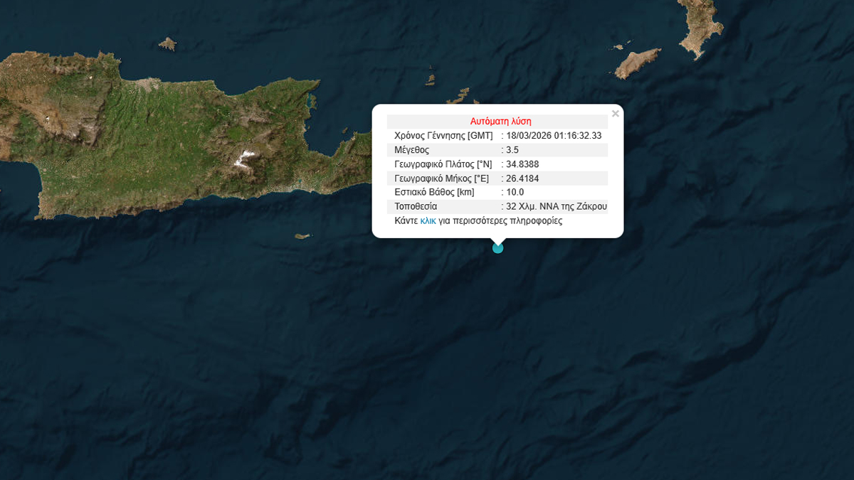 Σεισμός 3,5 Ρίχτερ ανοιχτά της Κρήτης