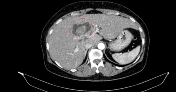 Bệnh nhân 59 tuổi nhập viện vì vàng da, ngứa kéo dài, được phát hiện đồng thời ung thư đại tràng phải và ung thư đường mật trong gan.