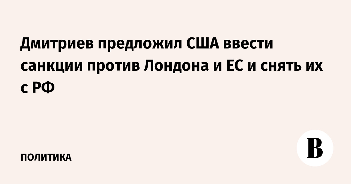 Дмитриев предложил США ввести санкции против Лондона и ЕС и снять их с РФ