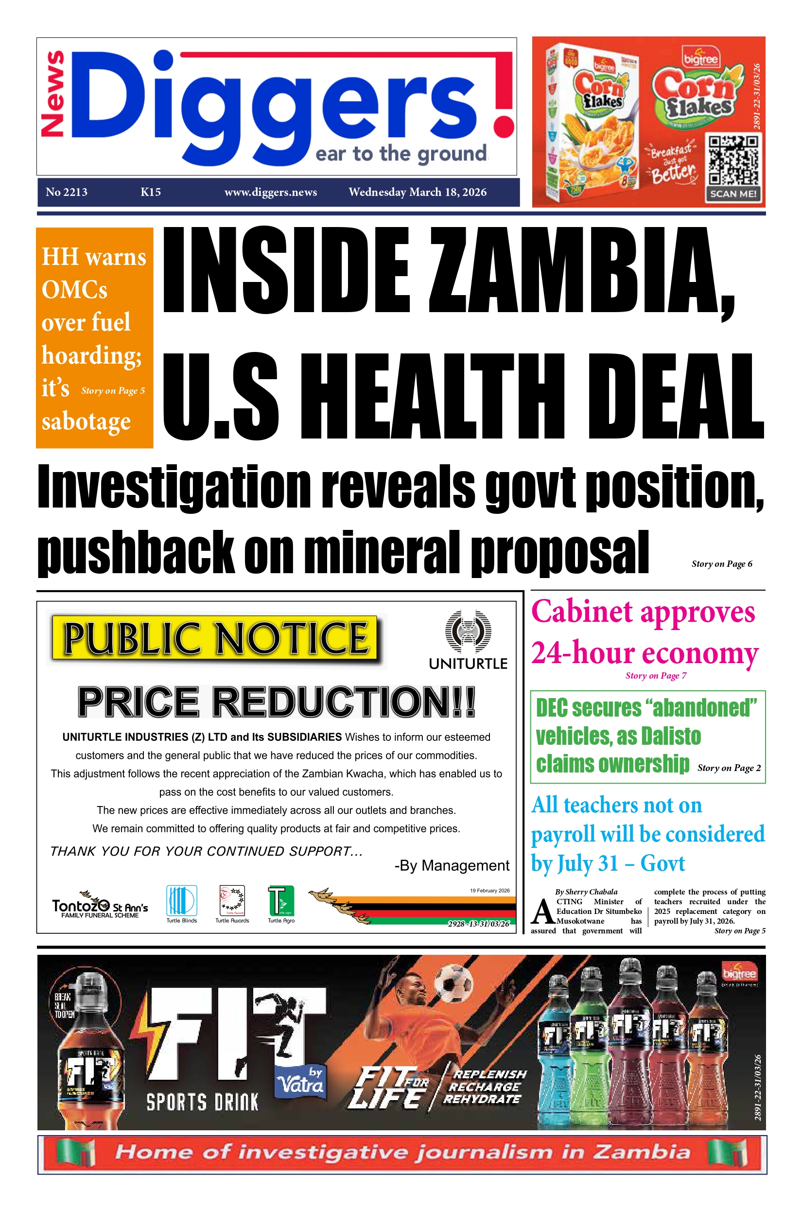 News Diggers Edition 2213 Wednesday March 18, 2026